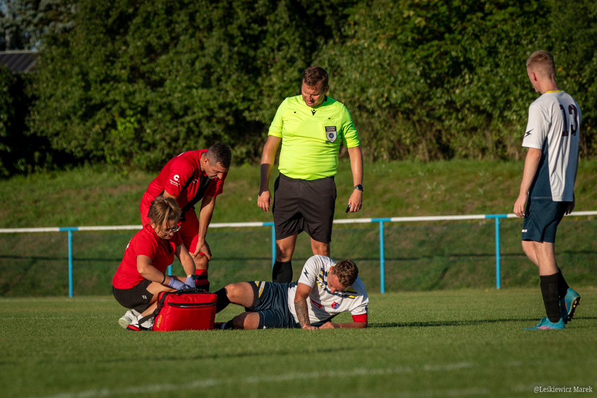 Zespół gości już nie czekał na kontry, musiał przejść do ataku. Dodatkowo w 75minucie, za drugą żółtą kartkę boisko opuścił Jarosław